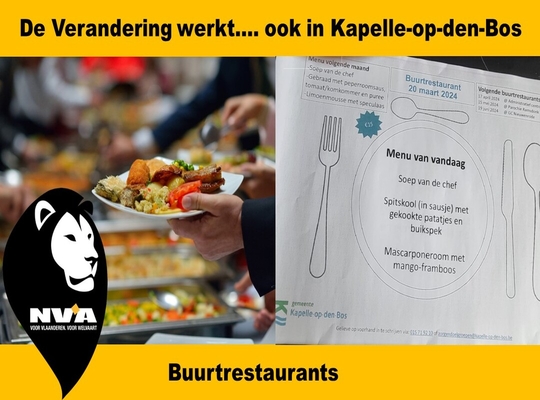 Het maandelijkse buurtrestaurant wil aan de inwoners van Kapelle-op-den-Bos de gelegenheid bieden om van een warme maaltijd te genieten aan een democratische prijs.
